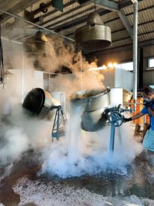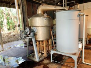 工場には大小さまざまな蒸留窯が3つ設置してありました。
