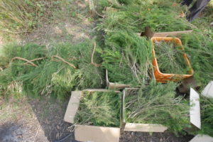 段ボールいっぱいのティートリーを最終的に100㎏集めました。